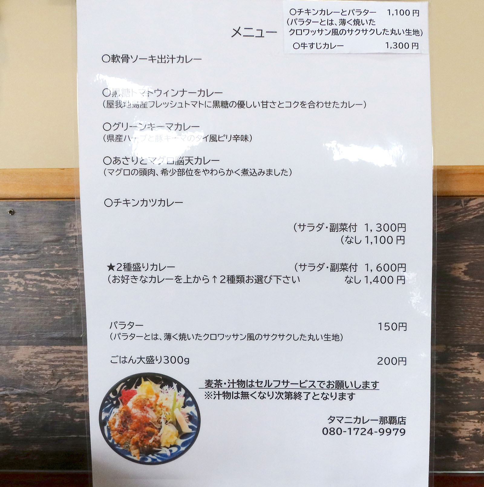 那覇・前島「タマニカレー」 メニュー