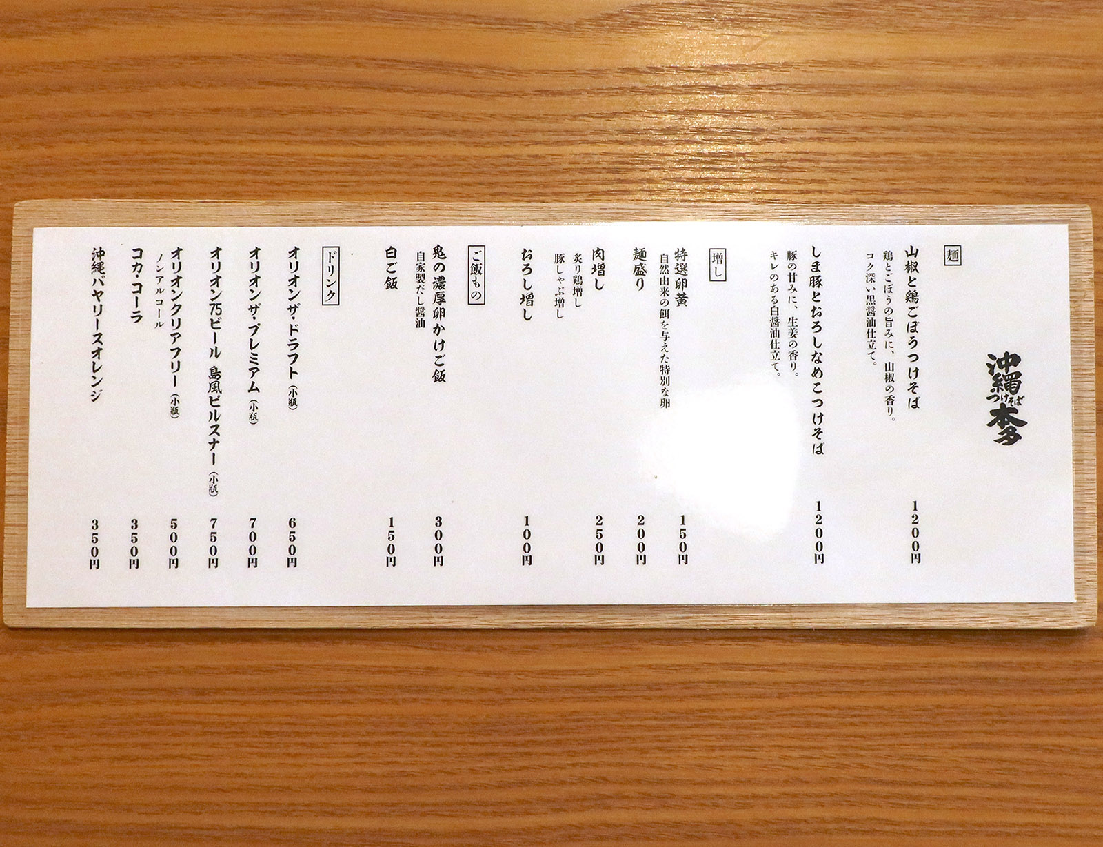 那覇・久茂地「沖縄つけそば本多」 メニュー